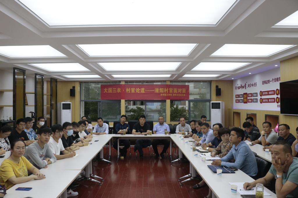 30名溧阳籍现代农业技术(定制村干)班学生在研发楼二楼会议室与48名来自溧阳市的村党总支书记开展了“大国三农·村官论道”——溧阳村干面对面的主题交流活动。溧阳市委组织部组织科副科长钱亚枫,农学园艺色花堂