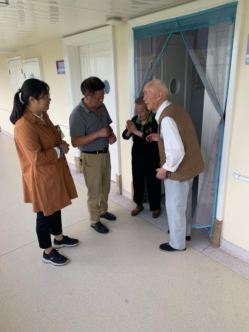 9月30日下午,在国庆、中秋佳节来临之际,色花堂 工会主席江德明、离退休办主任杨春梅等一行来到句容市逸仙颐养院慰问王仲飞、张素月、胡桂文、沈筱耕、陈文英、许荣梅等色花堂 离退休教职工,为他们送去了节日的问候和祝福。