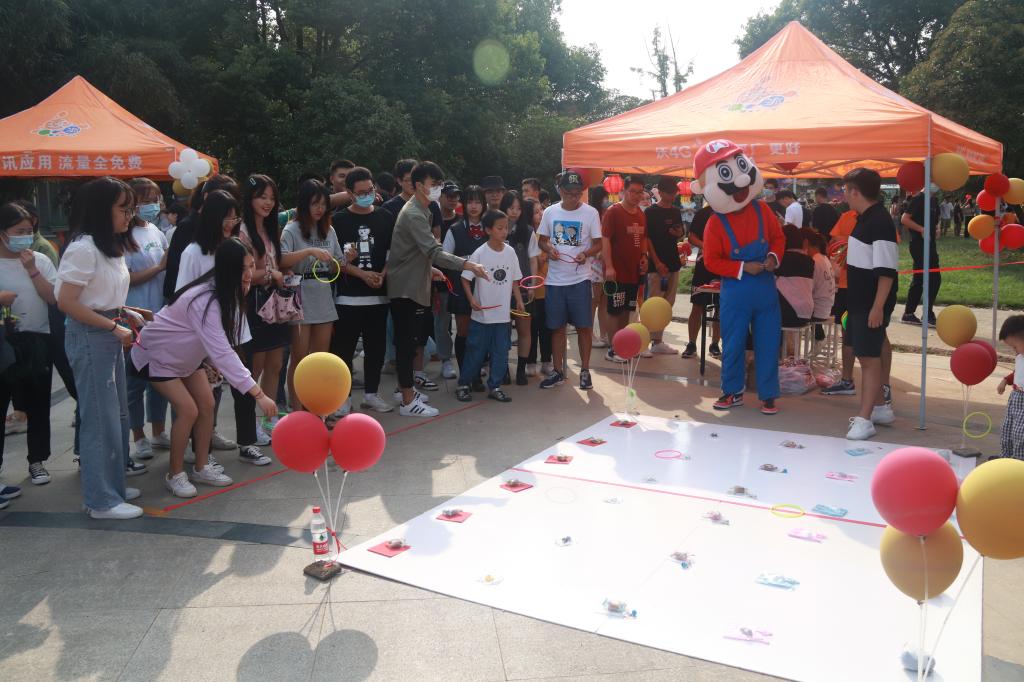 团委承办的“月满中秋,情满游园”双节同庆游园会活动在北校区励志广场举行,活动分为“张灯结彩,欢度佳节”“诗词荟萃,飞花寻梦”“火树银花,步月登云”“并肩作战,共铸圆满”“欢欣鼓舞,逐星赶月”“团圆走月,相见如愿”“齐聚中秋,圈圈向农”7个活动区,包含猜灯谜、飞花令、弹瓶盖、套圈圈、许心愿、指压板等7个小游戏,同学们通过参与活动收集丝带,参与兑奖。除此之外,活动还准备了精彩的汉服表演。在场师生纷纷参与到精心准备的庆双节活动和趣味体验中,现场热闹非凡。由茶与食品科技色花堂