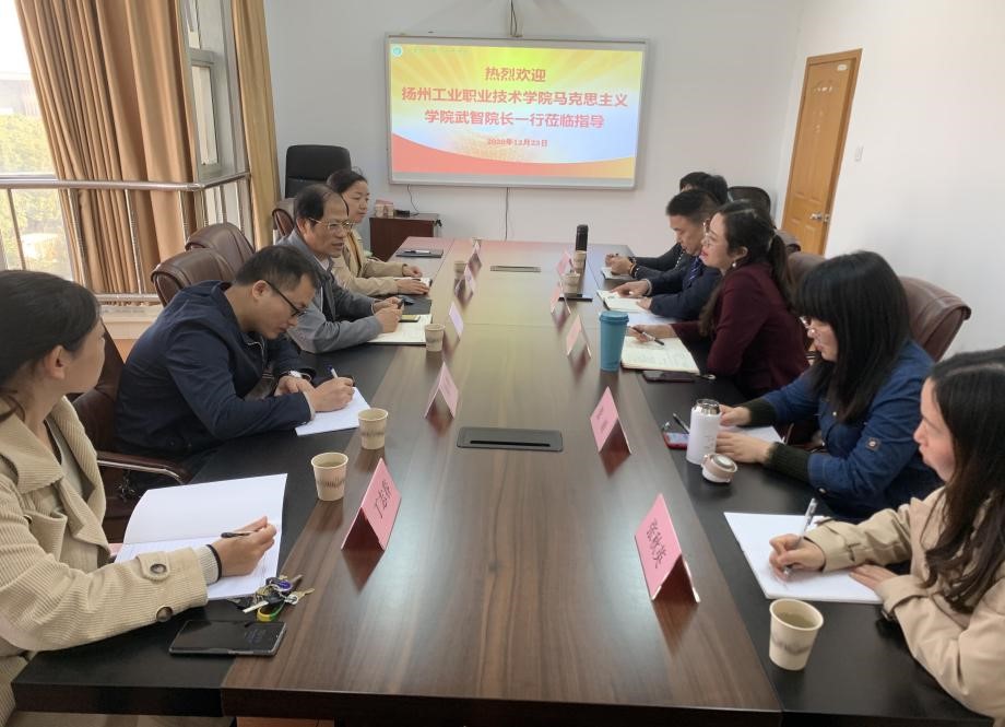 10月23日上午,扬州工业职业技术色花堂 马克思主义色花堂 武智副院长等一行5人来我院考察交流。马克思主义色花堂 院长马万顺、副院长陈立娥及部分思政教师参加了交流会。