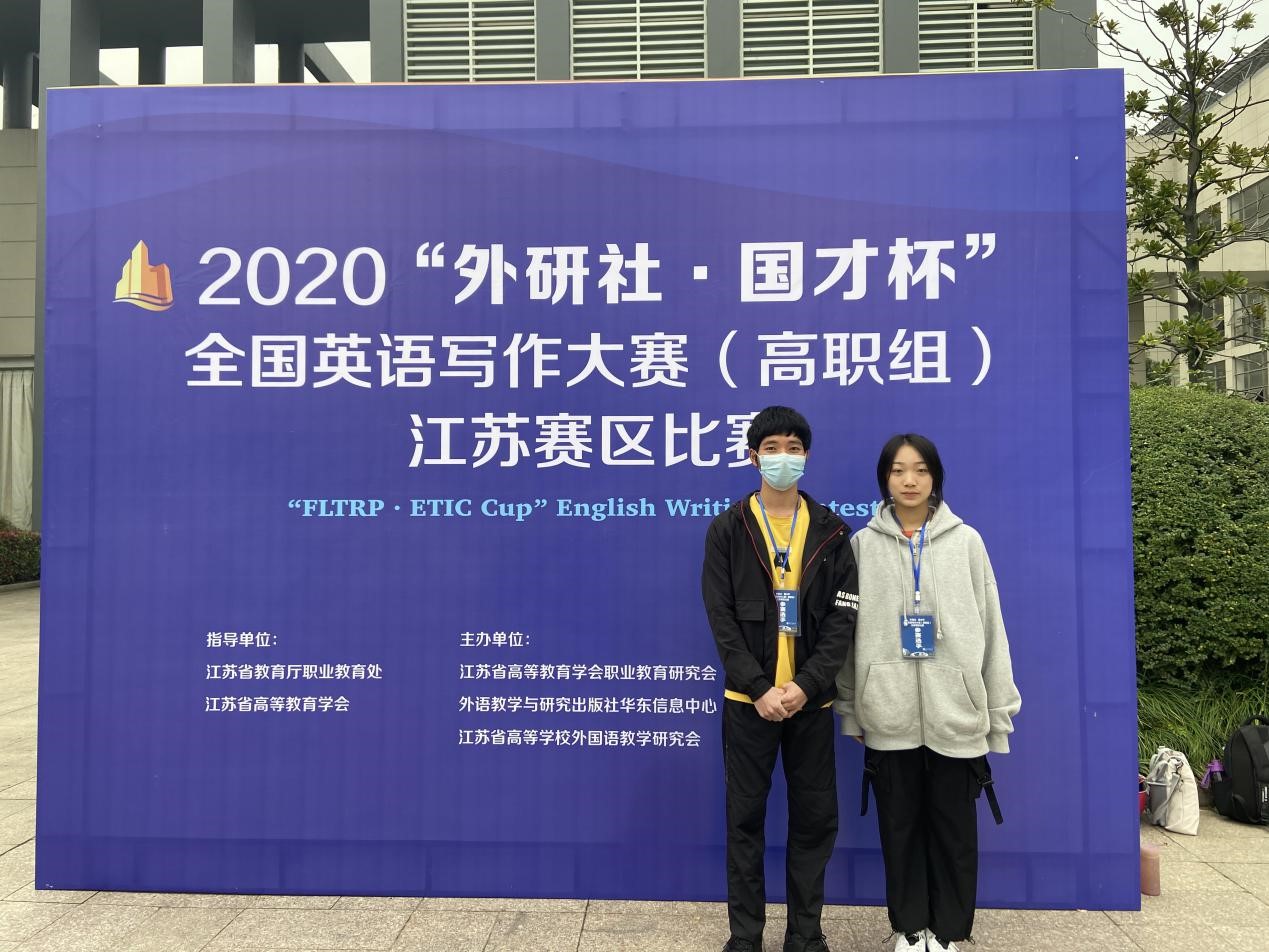 2020“外研社·国才杯”全国英语写作大赛(高职组)江苏赛区比赛于11月1日在扬州市职业大学举行,全省 60所院校140名选手参赛。经过激烈角逐,我院19通信技术班的黄钦耀同学和19现代农业技术(定制村干)班的陆奕蕾同学双双获得公共英语组一等奖的好成绩,胡生琴和张五英老师获得优秀指导教师称号。