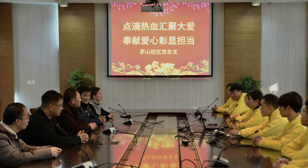 一直积极宣传动员,组织师生参与到义务献血中来。特别是今年新冠肺炎疫情发生以来,在镇江市中心血站库存量告急的时刻,茅山校区党总支喊出“无偿献血我先行、抗击疫情我担当”的口号,在师生中广泛发动。近日,共有540人参与到无偿献血中,献血量达173400毫升。献血活动的开展,正如锦旗内容所言“疫情无情人有情 大爱之举暖人心”,充分展现了我校师生不忘初心、勇挑社会责任、乐于奉献的精神。校区党总支书记汪国好表示,今后,将一如既往地关注、支持社会公益事业,将小我融入大我,积极组织、参与到义务献血、关注孤寡老人等社会公益活动中,为国家的公益事业贡献一份自己的力量。