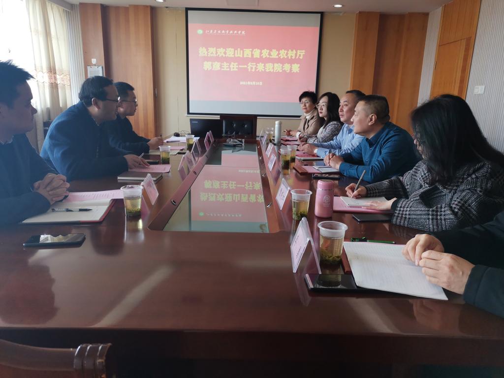 3月15日,山西省农业农村厅养殖技术试验基地主任郭彦、山西省农业广播电视学校贾晓红副校长、山西省农牧业技术综合服务培训中心负责人李勇、山西省农业规划设计研究院工程咨询所杜长青所长及山西省农业农村厅科教处赵庆安、吕莉一行来我院考察交流。