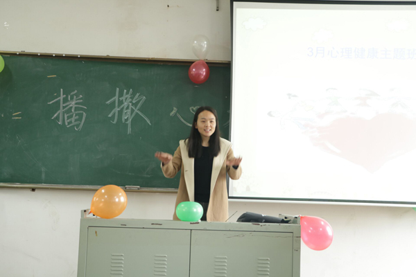 心理咨询室对校区63个班级的心育委员进行工作内容和边界、工作方法及技能的培训,并着重讲解了心理主题班会的设计和操作方法,各班心育委员对自身的岗位职责有了全新认识,明确了工作方向;安排了心理主题班会的观摩和学习,为全体心育委员和部分心理爱好者开展了心理主题班会展示课。最后,茅山校区所有班级在心育委员的带领下各自开展了主题鲜明、形式多样的心理班会。