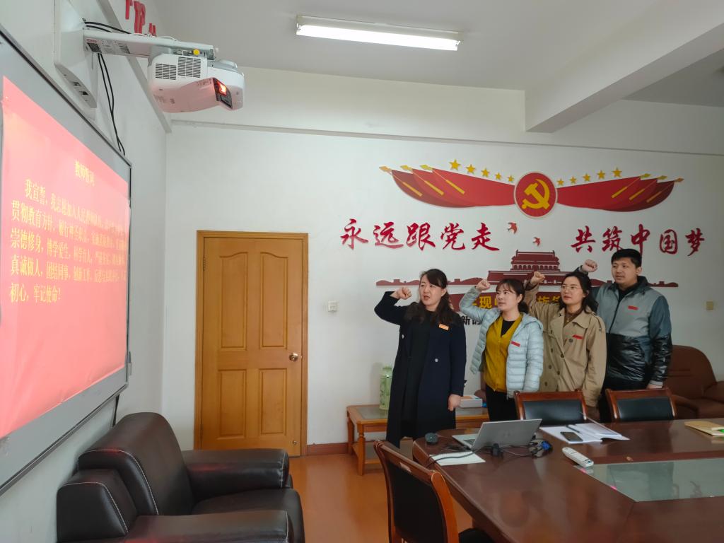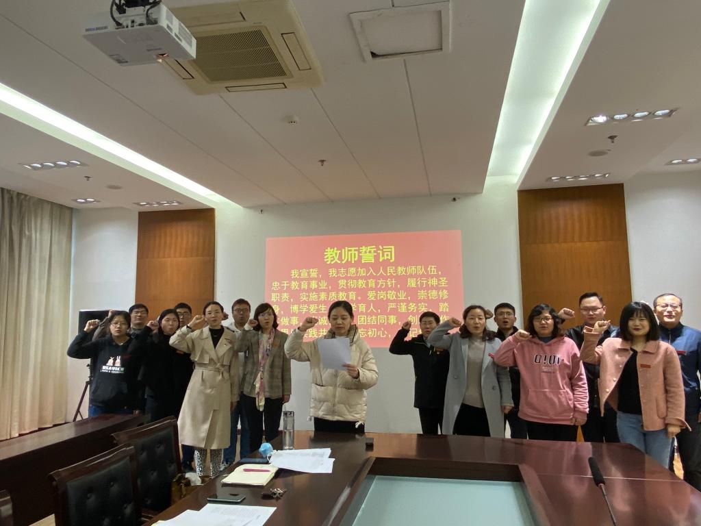 委员会2020-2021学年第二学期师德师风专项督查行动实施方案》文件精神,举行宣誓仪式,每位教师签订了“师德承诺书”。老师们在学习研讨中纷纷表示教育是立德树人的事业,要持续加强理论学习,坚持正确的政治方向,提高自身修养,争做新时代“四有”好老师。