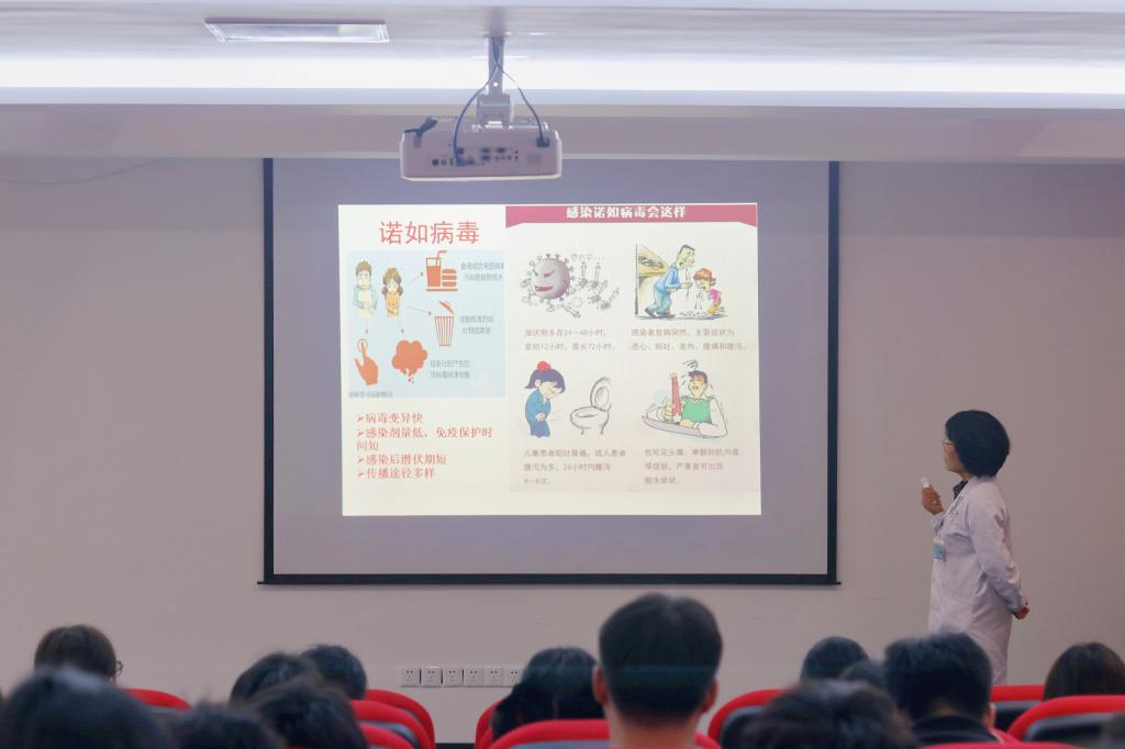 徐莉首先介绍了传染病的相关特点和基本知识,详细介绍了春季流行性感冒、水痘、肺结核、流行性腮腺炎、诺如病毒感染性腹泻等几个常见传染病的病因、发生机理、传播途径和临床表现,并着重讲解了预防和治疗手段。