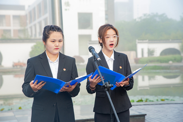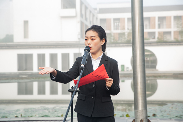 “独立寒秋,湘江北去,橘子洲头。”千名青年大学生在国旗下迎着朝阳诵读了毛泽东诗词《沁园春·长沙》,在朗诵中追溯党的历史伟业,重温红色经典。该词通过对长沙秋景的描绘和对青年时代革命斗争生活的回忆,抒写出革命青年对国家命运的感慨和以天下为己任,蔑视反动统治者,改造旧中国的豪情壮志。来自19茶树栽培与茶叶加工班姚光烨同学说到,“恰同学少年,风华正茂;书生意气,挥斥方遒。我们也许没有英雄那样的史诗气魄,但也不缺乏初生牛犊的赤子之心,我们为自己的人生奋斗就是为社会做贡献,作为一名入党积极分子,我会紧紧抓住时代机遇,乘风破浪、扬帆起航,让青春在不懈奋斗中绽放绚丽之花。”
