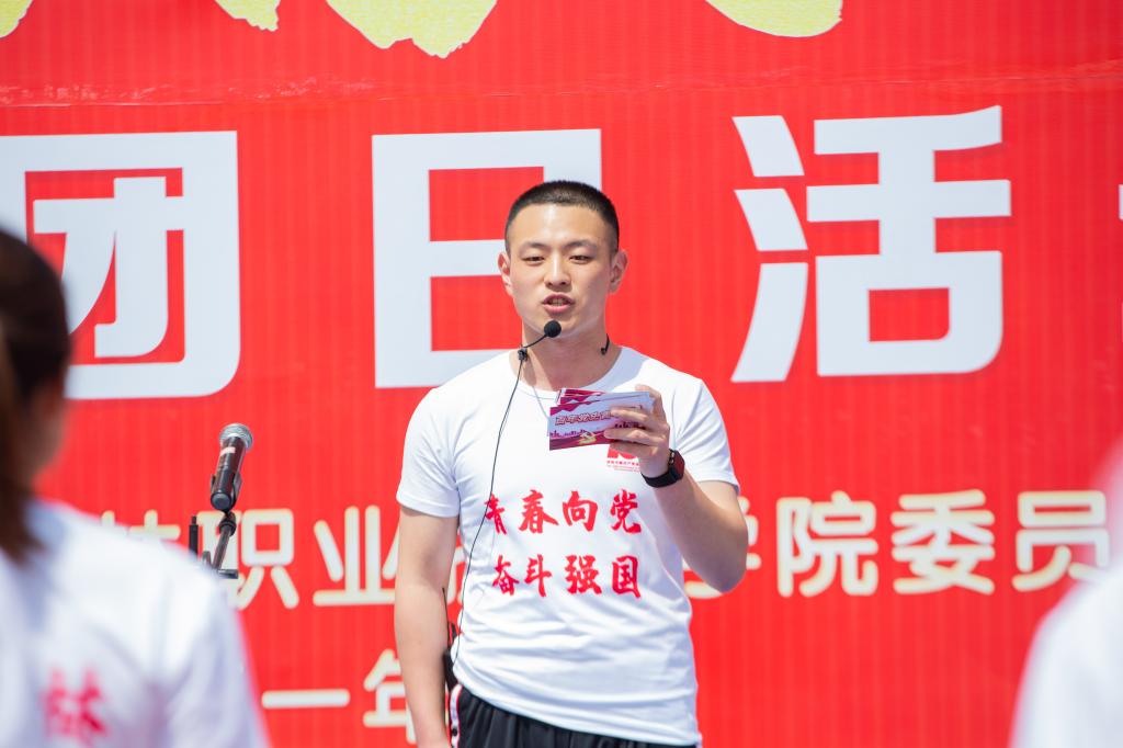 田径运动场举行,青年团员、共青团干部共计100人参加了活动。活动由团委书记董慧主持。