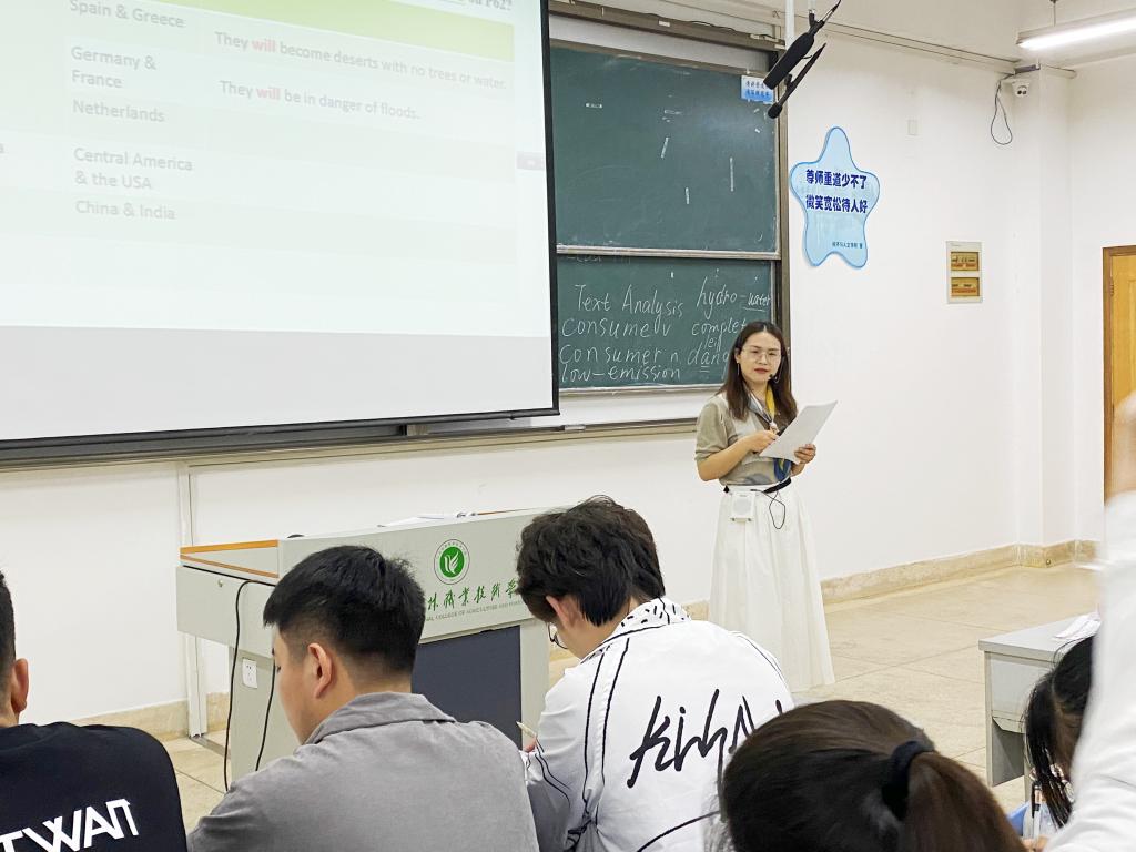 此次观摩课主题是课程思政课堂教学。戚燕丽老师在活动开展前多次磨课,精心修改,根据“单元主题--环境保护问题”合理挖掘思政元素,以“投盐入水”的方式将环境保护隐性融入课堂教学活动,在讲授英语语言知识,培养学生学生听、说、读、写、译各项技能的同时,科学引导学生关注环境问题,感悟中国的大国担当。通过组织课堂小组讨论、汇报展示等活动增强了课堂互动,极大地调动了学生的学习积极性,课堂气氛活跃,且达到了较好的观摩展示效果。