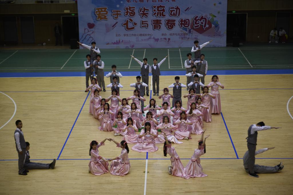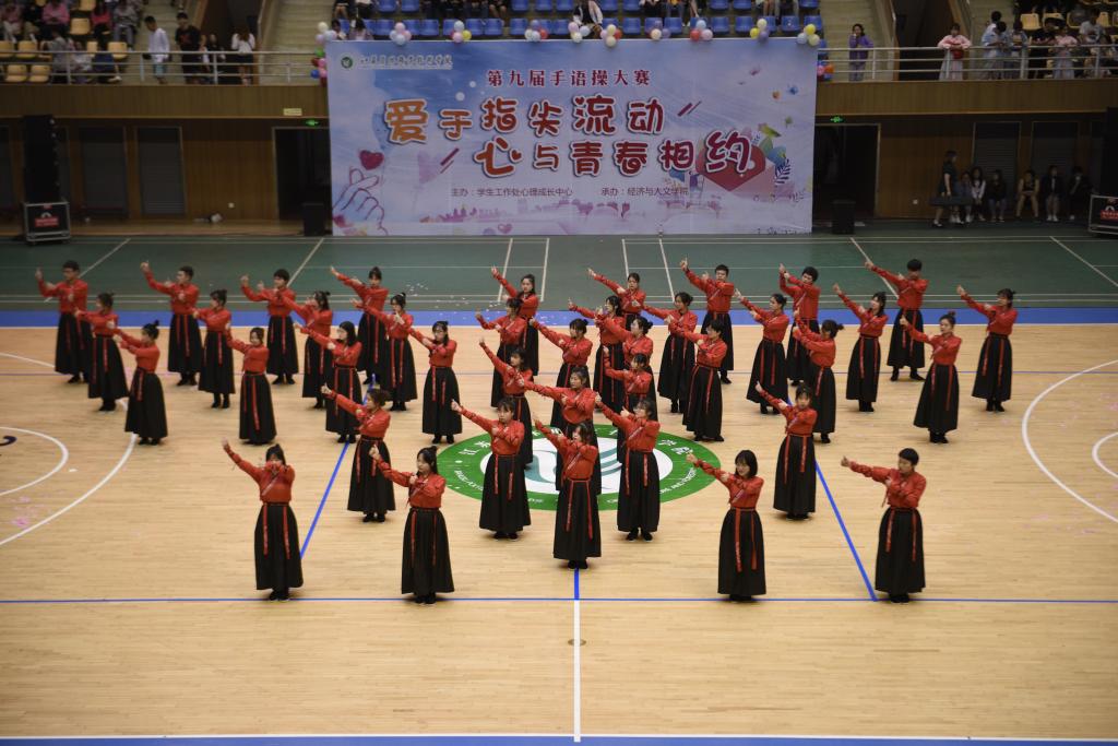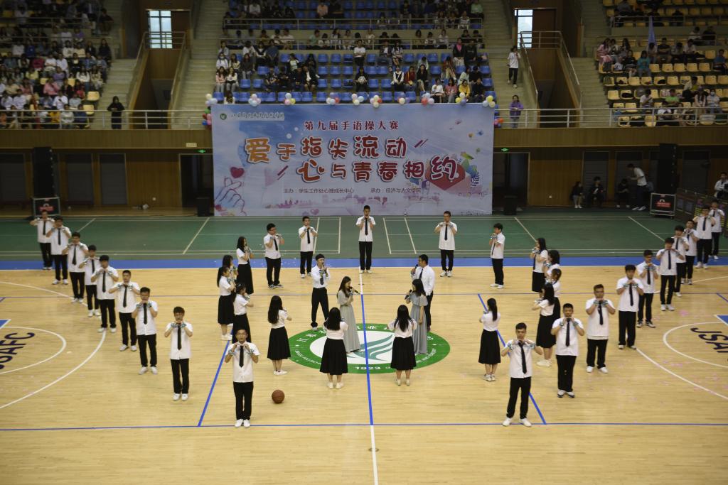 5月12日下午,第九届“爱于指尖流动 心与青春相约”手语操大赛在体育馆成功举办。比赛由学工处心理成长中心主办、经济与人文色花堂