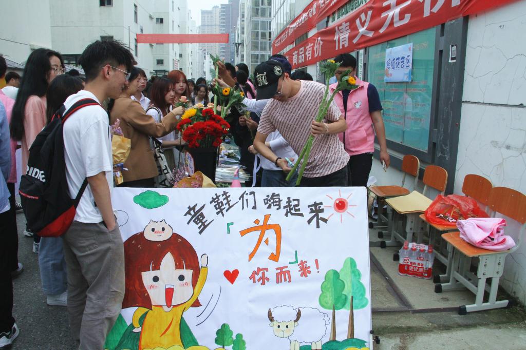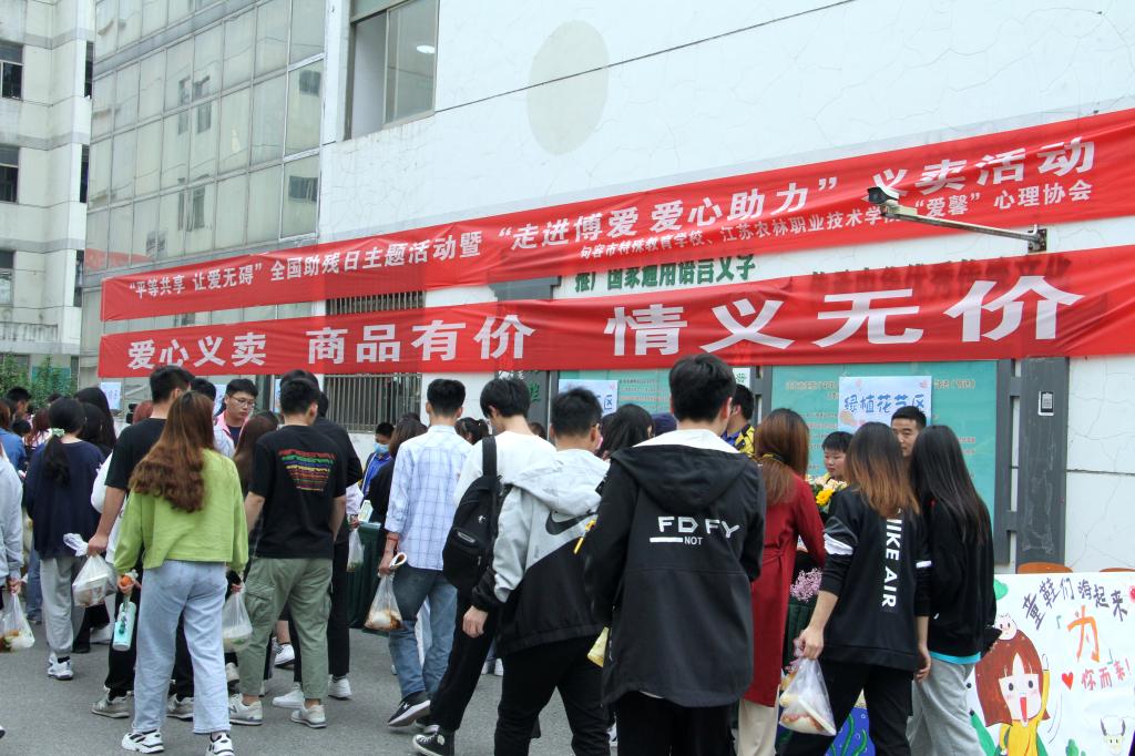 5月13日,全国助残日前夕,我院“爱馨”心理协会携手句容市特殊教育学校,在本部校区食堂门口举办了爱心义卖活动,特殊教育学校的十余位师生参与了活动。