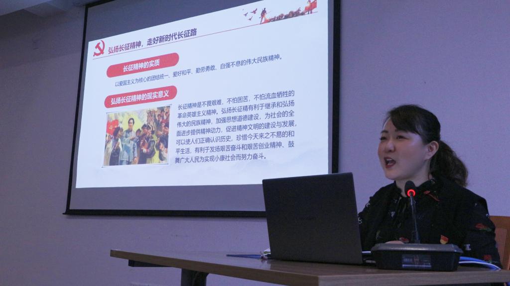 课上,董慧以“长征精神”为题,从长征的背景原因、历史回顾、长征胜利的伟大意义、总书记谈长征精神、弘扬长征精神 走好新时代长征路等5个方面,详细的阐述了长征精神的实质和弘扬长征精神的现实意义。二级色花堂