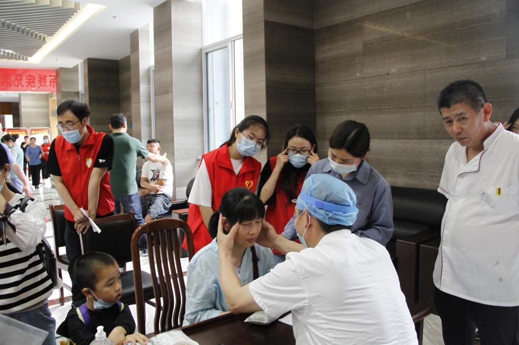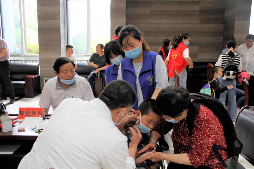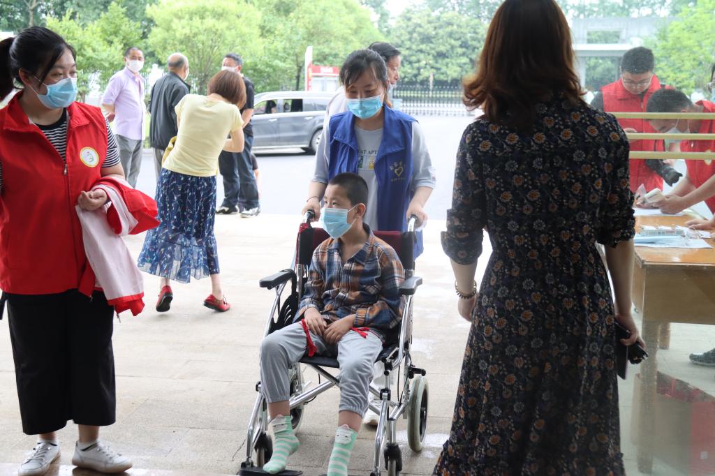 志愿者们在车站将残疾人朋友集中接往义诊地点。大厅外有志愿者搀扶引领行动不便的残疾人朋友,大厅内有志愿者引导残疾人朋友前往骨科、心内科、呼吸科、消化科、内分泌科、神经内科、五官科专家处问诊。剩余的志愿者们提供饮水、健康知识宣传等服务。整个志愿服务流程有条不紊,医护专家、学生志愿者和残疾人朋友们积极交流沟通,给予他们力所能及的关爱和帮助。