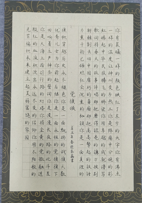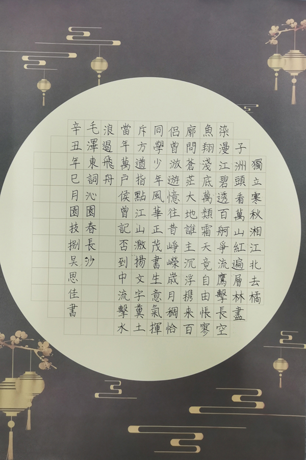 语言文字工作委员会、茅山校区联合主办的“笔墨中国”汉字书写大赛成功举办。此次活动主题为“翰墨言百年党史,挥毫抒爱国情怀”,由翰墨色花堂书画社承办,130余名同学参加。