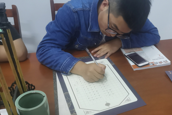 本次比赛作品形式灵活,内容多样,分为硬笔和毛笔两组同时进行。在书写现场,参赛选手们个个坐姿端正,神情专注,用心书写每一个笔画,他们的作品有的娟秀婉约,有的大气舒展,有的端正整齐,充分展示了同学们的精神风貌和艺术才华。经过评委的认真评选,20财务管理(单招)班柴家鑫荣获硬笔组一等奖,20市场营销1班潘茂锐荣获软笔组一等奖。