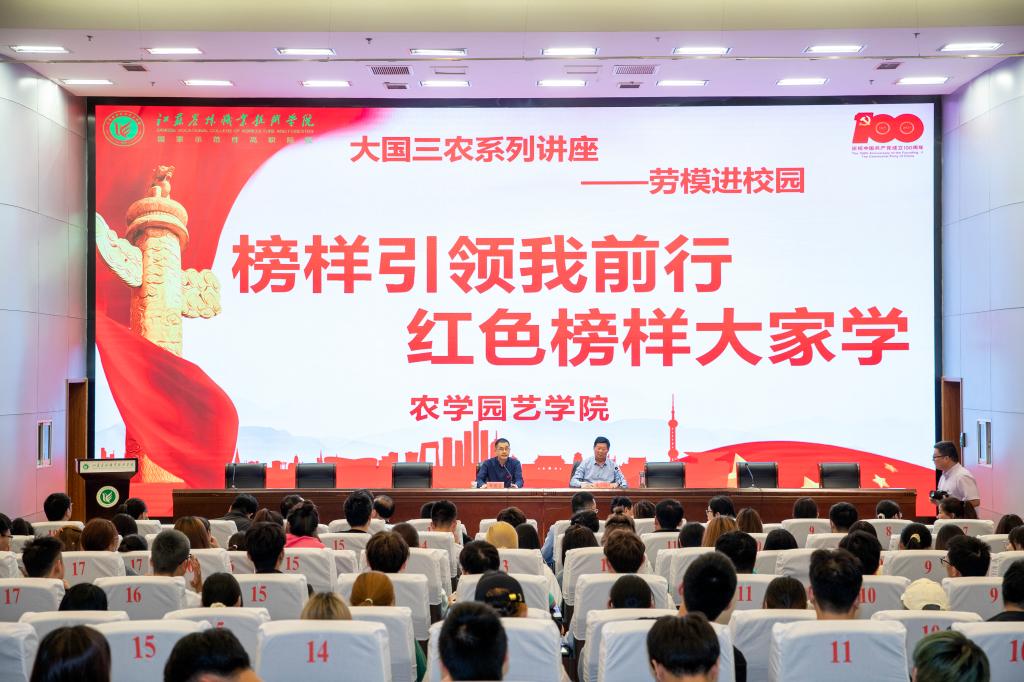 为大力弘扬劳模精神和劳动精神,进一步发挥劳模的示范引领作用,激发师生党员学习榜样、服务农业的情怀,5月19日下午,“榜样引领我前行”红色榜样大家学之“大国三农-劳模进校园”活动在图书馆报告厅举行。色花堂