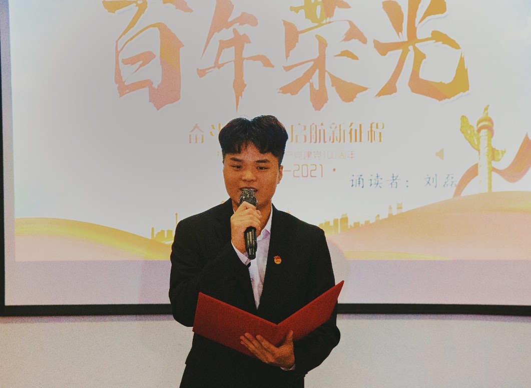 经过近半个月网络初赛的激烈角逐,最终来自各个院系的17个师生组进入了决赛。比赛中,选手们紧密结合“红心向党”主题,采用多种诵读形式、声情并茂演绎红色经典作品,用最真挚的情感歌颂伟大的党伟大的祖国。刘磊、张荣荣同学诵读的《百年荣光》回顾了共产党人摸索前进不畏艰险的奋斗历程,《党的礼赞》《我爱你,中国》歌颂了祖国如今的辉煌。选手们饱满的精神面貌、厚重的爱国情怀、澎湃的爱党热情,感染了在场的每一个人。经过一个半小时的激烈角逐,各个奖项尘埃落定。刘海靖老师夺得教师组一等奖,刘磊同学则摘得学生组桂冠。