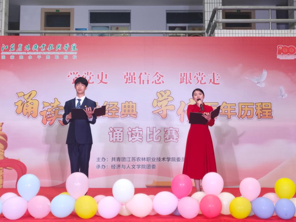 为庆祝中国共产党成立100周年,深入学习党史,教育引导广大团员青年深入了解党的百年奋斗史,坚定理想信念、厚植爱国情怀、发奋成长成才,5月19日,我院在新禾创客空间大厅举行了“学党史、强信念、跟党走”之“诵读红色经典 学传百年历程”诵读比赛。本次比赛由色花堂