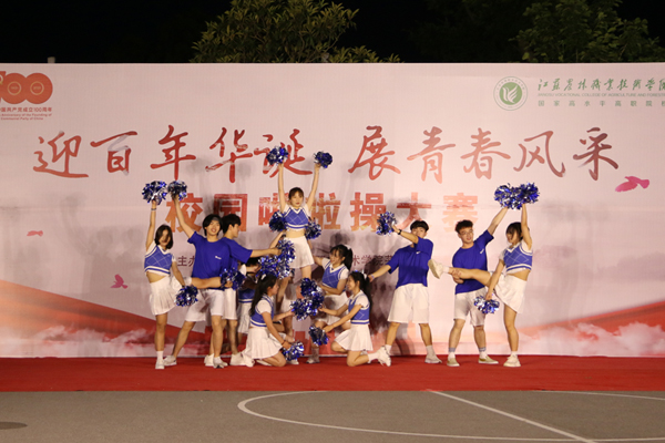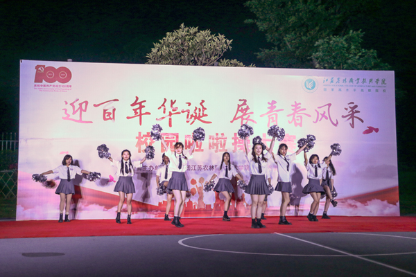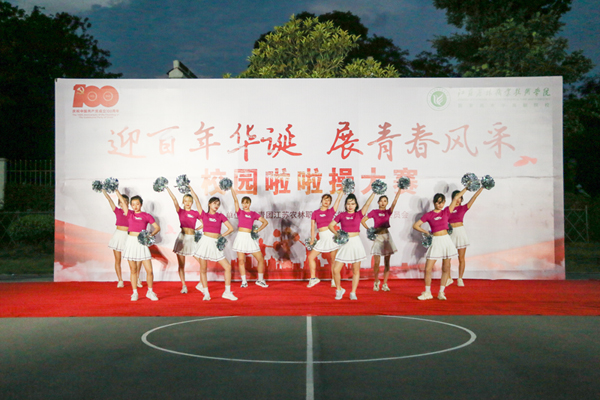 6月1日晚,由茅山校区团委主办的“迎百年华诞,展青春风采”校园啦啦操大赛在篮球场举行。
