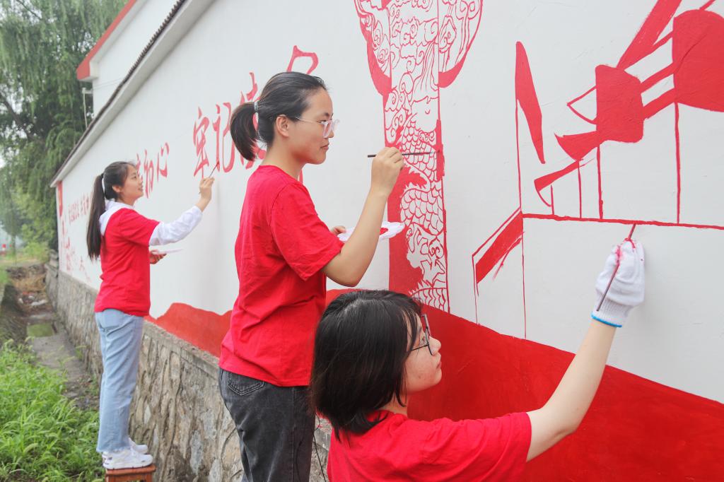 团委积极响应校团委关于开展2021年暑期文化科技卫生“三下乡”社会实践活动的号召,认真选拔志愿者,组建“笔尖下的美丽乡村”暑期社会实践团,对句容市边陈镇衣庄村、天王镇戴庄村开展了以“永远跟党走,奋进新时代”、“社会主义核心价值观”、“新农村建设”等内容为主的文化墙绘制暑期社会实践活动。