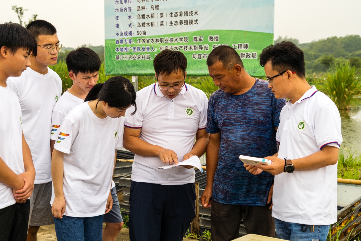 近日,我院组织以水产养殖技术专业学生为主的暑期社会实践团队走进句容市茅山管委会墓东村。本次暑期社会实践的负责人是镇江市亚夫科技服务团成员王煜恒老师,实践主题为“鱼你想约,科技兴渔”。