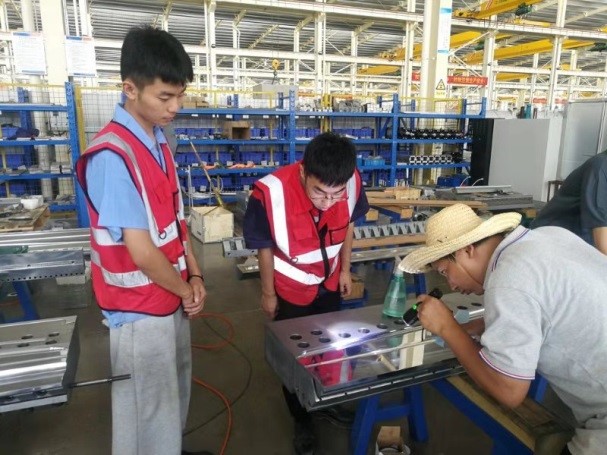 根据校企人才培养方案,企业方按工厂实际设立学生实习岗位,由企业技术骨干“手把手”培训学生技术技能。随行校方教师,在参与学习指导现场实操的基础上,利用夜间休息开展党团知识、劳动意识、职业素养等方面的讲座。7月酷暑,师生白天苦练技能,晚上学习、交流、研讨,感悟匠心精神、端正理想信念,树立正确的人生规划。