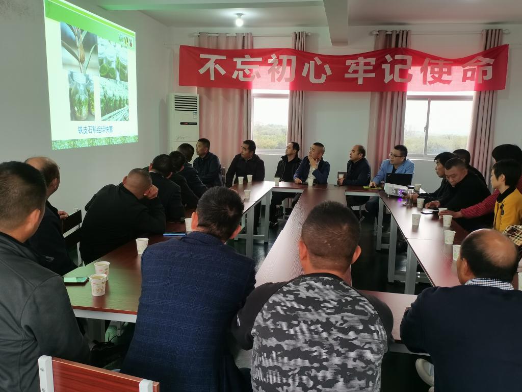 生物工程技术中心林下经济研究室主任史俊老师介绍了生物工程技术中心中药材科研、生产等相关成果,特别对铁皮石斛种苗繁育、栽培种植及病虫害防治技术进行了透彻地讲解,得到了淮安涟水市农业农村局及当地中药材种植户的一致好评,普遍认为受益匪浅。