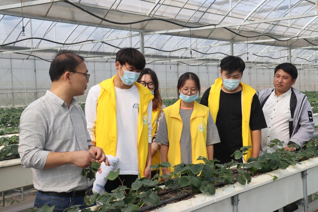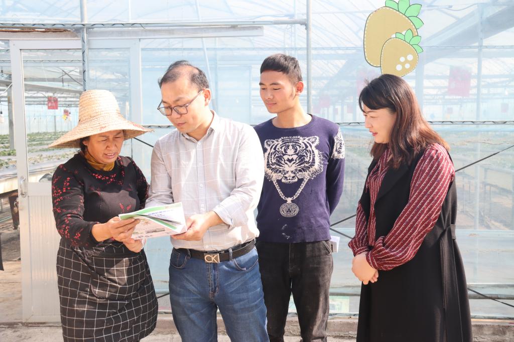“新禾助农服务团”来到白兔镇开展草莓种植指导和物资物化。