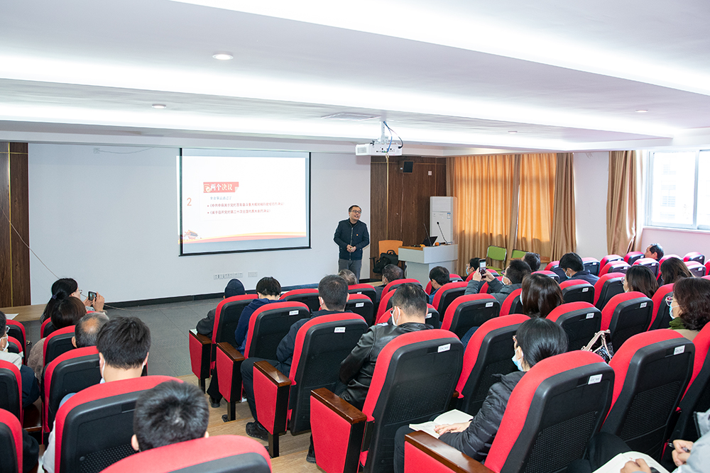 唐智老师以“学习全会精神 凝聚奋斗伟力”为题,从基本情况、全会公报、历史决议三个方面对十九届六中全会精神作了深入解读,并就决议内容进行了重点分析,帮助大家深化了对全会精神的理解。