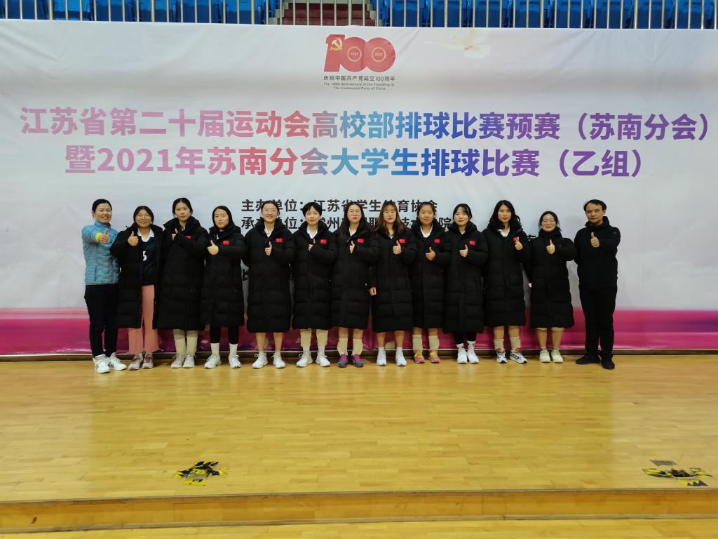 近日,为期三天的江苏省第20届运动会高校部排球预赛(苏南)暨2021年苏南分会大学生排球比赛在常州工程职业技术色花堂 落下了帷幕。我院女子排球队参加了乙组比赛。本次比赛我院女子排球队继承了往届院女子排球队纪律严明、敢打敢拼的优良作风。在面对最后一场强敌常州机电的关键战,队员们不畏强敌、逆风翻盘,以2:1战胜对手。最终我院女子排球队获得了本次比赛的亚军,取得决赛阶段参赛资格,充分展示了我校学生的运动实力和体育水平。