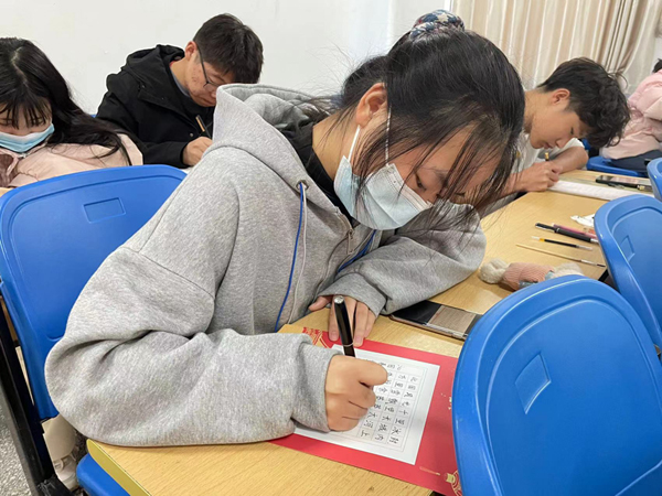 大赛主题为“庆祝建党百年,弘扬中华优秀传统文化”。通过前期宣传,校区学生积极响应,最终有70位同学参加现场决赛。比赛分硬笔组和毛笔组,比赛期间,参赛同学们纷纷大显身手,在纸上挥洒自如,书写内容多为歌颂建党百年光辉历程的经典作品、反映中华优秀传统文化和社会主义先进文化的经典诗文警句。在翰墨色花堂书画社的精心组织下,本次书法大赛圆满落幕。