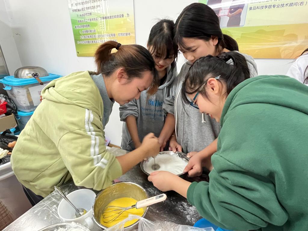 本次活动结合我院专业特色,以“千层蛋糕制作”为主题展开。活动过程中,同学们小组协作,经过黄油打发、奶油调制、蛋糕雏形制作、烤箱烤制等环节,顺利完成本次活动。此次活动不仅让同学们锻炼了专业技能,提高实践能力,也让同学们在沟通协作中了解他人,认识自我,大大挖掘了同学们的创新创意思维,促进身心全面发展,为营造积极向上的心理健康氛围增添了多姿色彩。