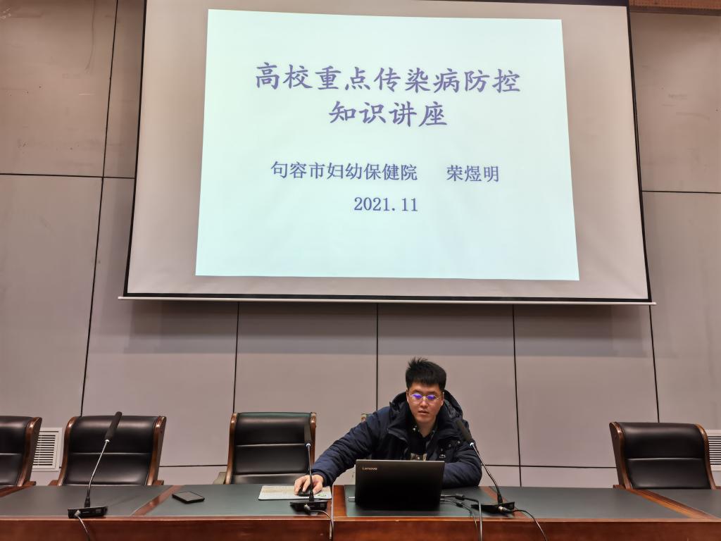 分别邀请了句容市卫健委党委委员王波、公共卫生科陈少军、崇明卫生服务中心段同兰和妇幼保健院荣煜明等专家到校主讲,各位专家结合自己的工作实例,图文并茂地介绍了新冠肺炎、结核病、流感、艾滋病、水痘和诺如病毒感染性腹泻等常见传染病的发生、传播途径及预防措施,教师和学生代表约1200余人参加了此次系列讲座。