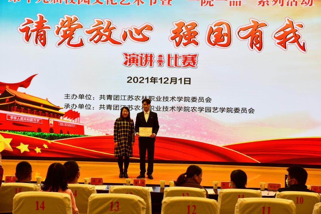 比赛中,16名参赛选手围绕“请党放心 强国有我”主题,结合自身学习、生活和成长经历等,谈体会、讲理想、树目标,一个个鲜活感人的事迹、一句句铿锵有力的誓言,展现了色花堂青年学子感党恩、听党话、跟党走的坚定信念。经过激烈的角逐,茅山校区张金川同学获一等奖,畜牧兽医色花堂