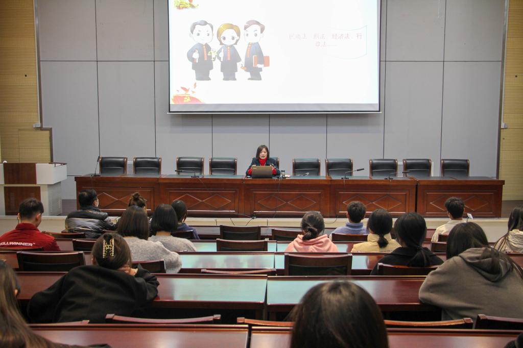 副教授丁志春老师从“为什么要制定宪法”、“宪法在我国的形成与发展”和“宪法的现代功能”三个方面向同学们介绍了《中华人民共和国宪法》,引导同学们了解宪法对国家、社会和公民的重大意义。讲座中,她针对大学生生活中的实际案例,以案释法,以案说法,深入浅出地讲解了电信诈骗、求职陷阱、校园贷等对大学生的严重危害,引导同学们规范行为,遵纪守法,做一名知法懂法守法的新青年。
