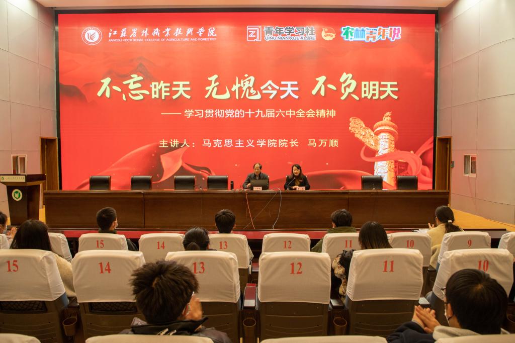 团委在图书馆报告厅举办了党的十九届六中全会精神专题辅导讲座,邀请了马克思主义色花堂