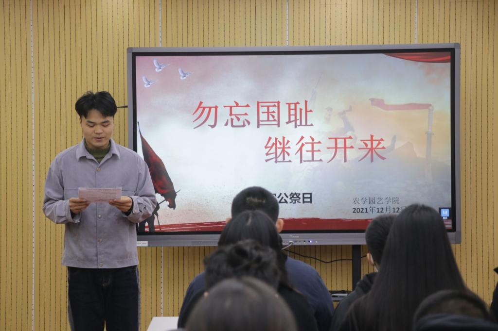 12月13日是第八个南京大屠杀死难者公祭日,为了缅怀惨遭日本侵略者杀戮的死难同胞,让同学们铭记历史,珍爱和平,增强爱国主义情感,2021年12月12日农学园艺色花堂