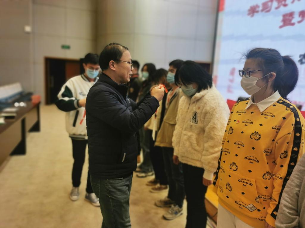 为全体学生党员授予了“党员示范岗”标牌,希望全体党员强化先锋模范意识,自觉接受其他同学监督,坚定信念,刻苦学习,以身作则,发挥学生党员的先进性,在学习和生活中起到模范作用。