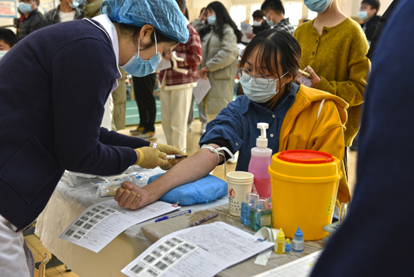 12月15日,由茅山校区团委、镇江市中心血站联合发起的以“爱心传递,生命接力”为主题的大学生义务献血活动在校区体艺中心顺利开展。