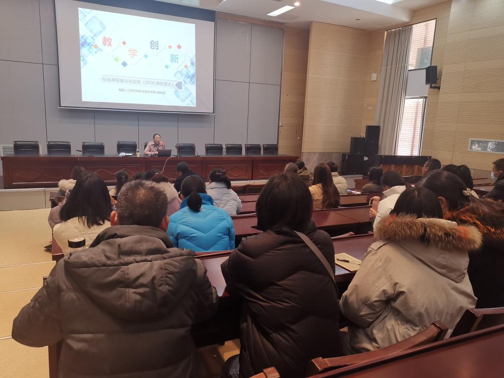 为深入推进基础部(体育部)的在线课程建设工作,切实提高立项MOOC、SPOC课程的利用率, 12月30日下午,基础部(体育部)主任梅霞以《在线课程建设与应用》为题,结合具体课程案例,从教学理念、信息技术、课程建设、教学实践等四个方面,面向全体教师开展了内容充实、主题鲜明的讲座。
