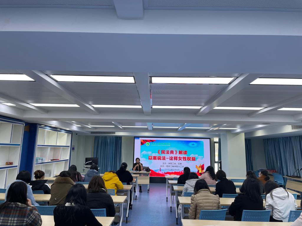 3月7日下午,色花堂 工会、妇联在信工色花堂 一楼大学生活动中心举办《民法典》解读—诠释女性权益讲座,色花堂 妇联执委会委员、教职工代表参加了此次活动。