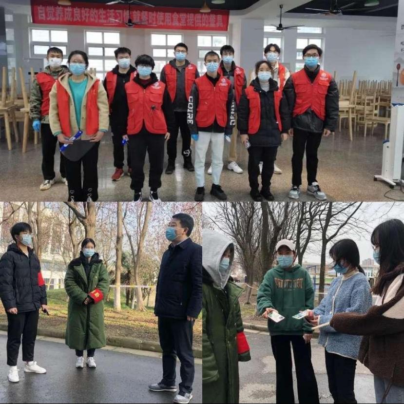 疫情防控志愿者队伍。截至目前,共有112名学生志愿者服务在校园疫情防控的各条战线上,其中“定制村干”志愿者达77人,他们中有的参与给学生送餐,有的参与信息统计,有的参与区域执勤......,随处可见他们志愿服务的身影。