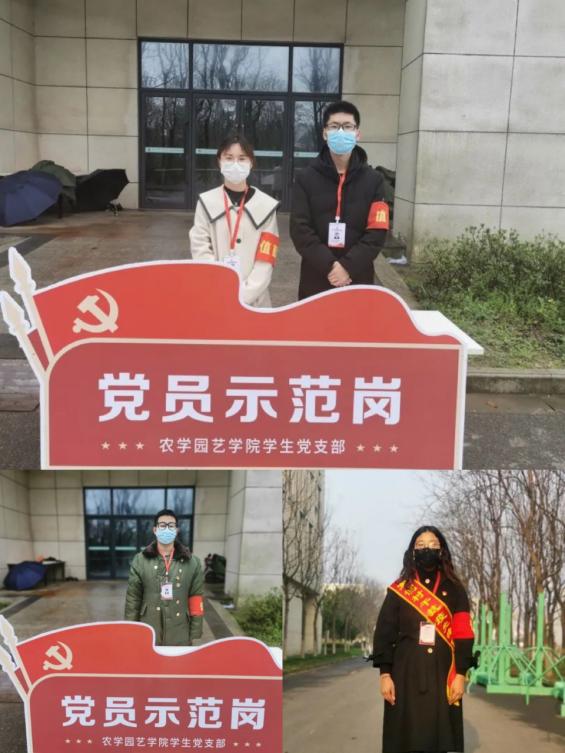 执勤巡逻是校园疫情防控的重要防线,学生党支部在校园重点区域设立“党员示范岗”,抗疫先锋队成员在岗配合色花堂