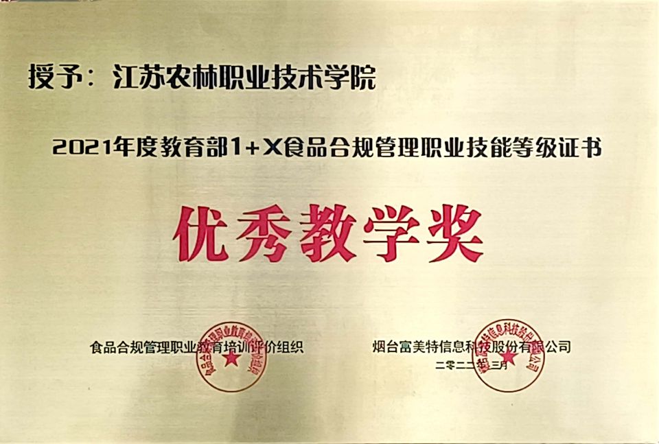 为贯彻落实《国家职业教育改革实施方案》和《关于在院校实施“学历证书+若干职业技能等级证书”制度试点方案》的部署要求,食品合规管理评价组织于2022年3月26日通过线上会议成功举办了“1+X食品合规管理职业技能等级证书2021年总结表彰会”。我院荣获“全国考核优秀单位”和“优秀教学奖”二项殊荣。
