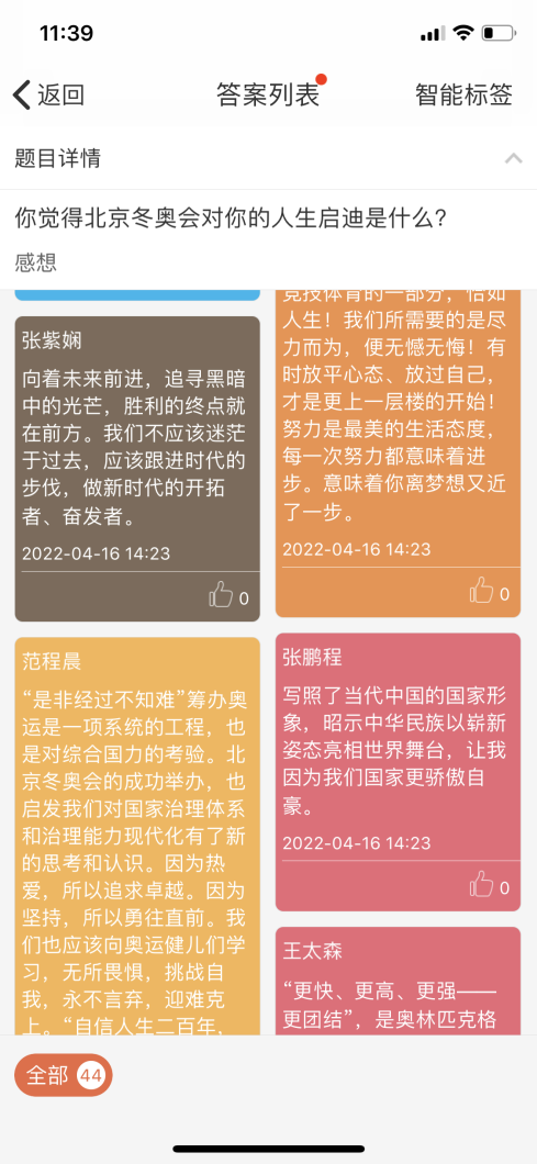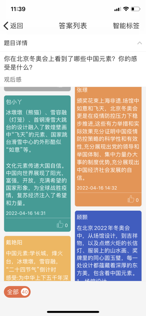 思政课教师在云班课、学习通等平台设置“你在北京冬奥会上看到了哪些中国元素?”“你觉得北京冬奥会对你的人生启迪是什么?”等问题,引发学生热烈讨论。同学们表示此次北京冬奥会、冬残奥会的成功举办,感受到了我国集中力量办大事的制度优势以及中华文化的博大精深;通过了解运动员的奋斗事迹,激励学生在实现理想的青春奋斗路上不畏艰险、勇于拼搏。面对目前疫情防控局势依然紧张的情况,同学们表示要发扬北京冬奥精神,积极投身志愿服务一线,为打赢这场疫情阻击战作出自己的贡献。