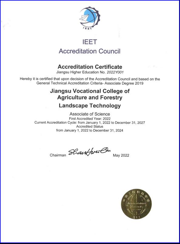 近日,中华工程教育学会函达我校,园林技术专业顺利通过IEET国际工程教育认证。我院园林技术专业人才培养工作达到《悉尼协议》认证规范要求,工程教育水准实现国际实质等效,工程教育质量保障体系获得国际认可,毕业生培养质量在悉尼协议成员国间互认,同时也为“双高”园林技术专业群建设工作起到重要的推动作用。