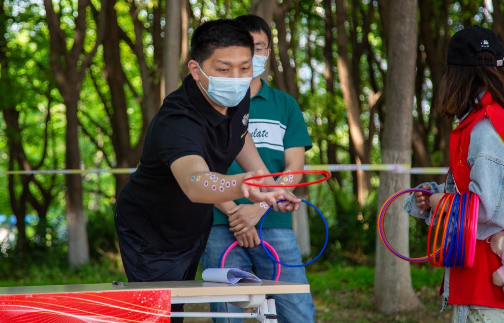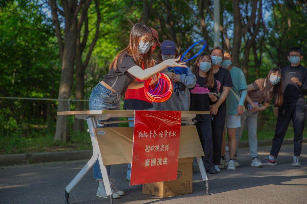 挑战赛共分为答题挑战、弹球挑战、抽纸挑战、长腿挑战、盲盒挑战、套圈挑战等六个环节。教职工和学生分两个区域进行挑战,党史、团史知识大比拼,需要技巧的弹球,拼手速和考验心理的抽纸游戏,集弹跳、爆发力、协调性和技术性为一体的跳远或展现柔韧性的一字马,充满惊喜的盲盒。在轻松愉悦又不乏紧张刺激的氛围中,他们兴致盎然、踊跃参与,争分夺秒地积极完成挑战。此次挑战赛不仅展现了我院师生积极向上、努力拼搏的精神面貌,还增进了相互间的友谊。经过紧张激烈的挑战,教职工和学生们都获取了心仪的奖品,满载而归。