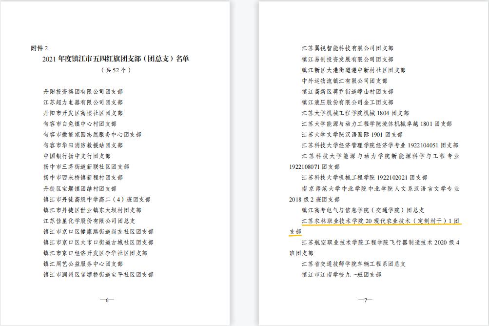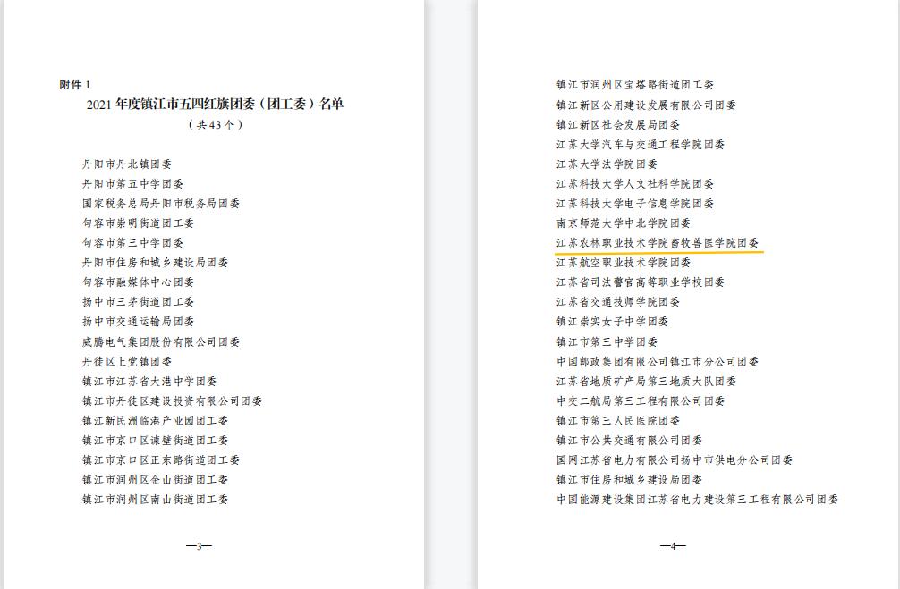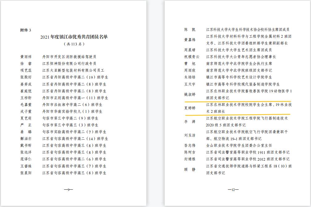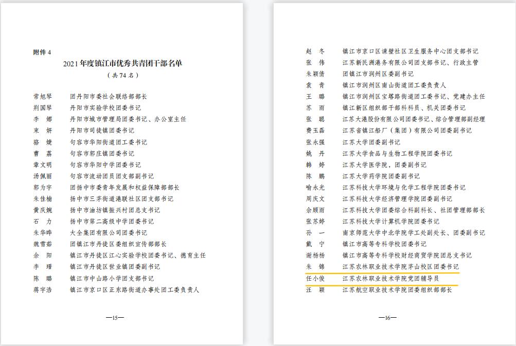 我院姚淑婷、夏婷婷2位同学荣获“镇江市优秀共青团员”,朱锦、任小俊2位教师荣获“镇江市优秀共青团干部”,畜牧兽医色花堂 团委荣获“镇江市五四红旗团委”,农学园艺色花堂 20现代农业技术(定制村干)1班团支部荣获“镇江市五四红旗团支部(总支)”。