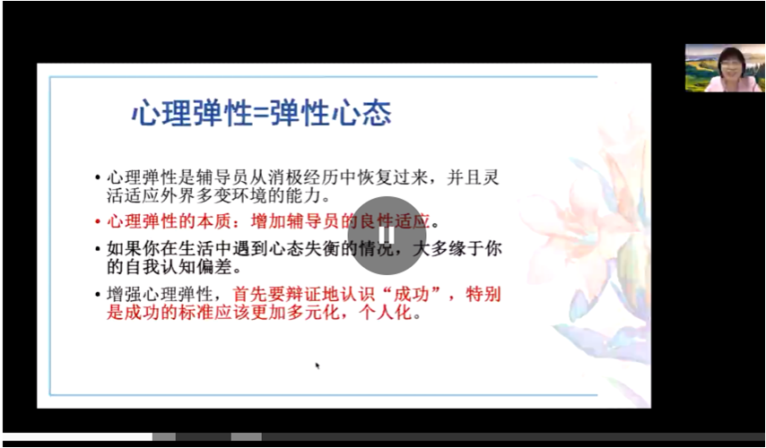 本次培训由李焰、马喜亭等多位国内专家主讲,包括《疫情下高校辅导员如何拥有弹性的心态》《高校辅导员的自我关照》《心理防疫巧作为》《疫情下高校辅导员的自我心理保健》《疫情下高校辅导员关心关爱学生心理成长策略》《疫情下的心理调适与幸福人生》六大主题,从多个专业视角出发,帮助辅导员在疫情防控背景下加强自身心理建设,并为辅导员的日常工作提供了科学的建议和方法。