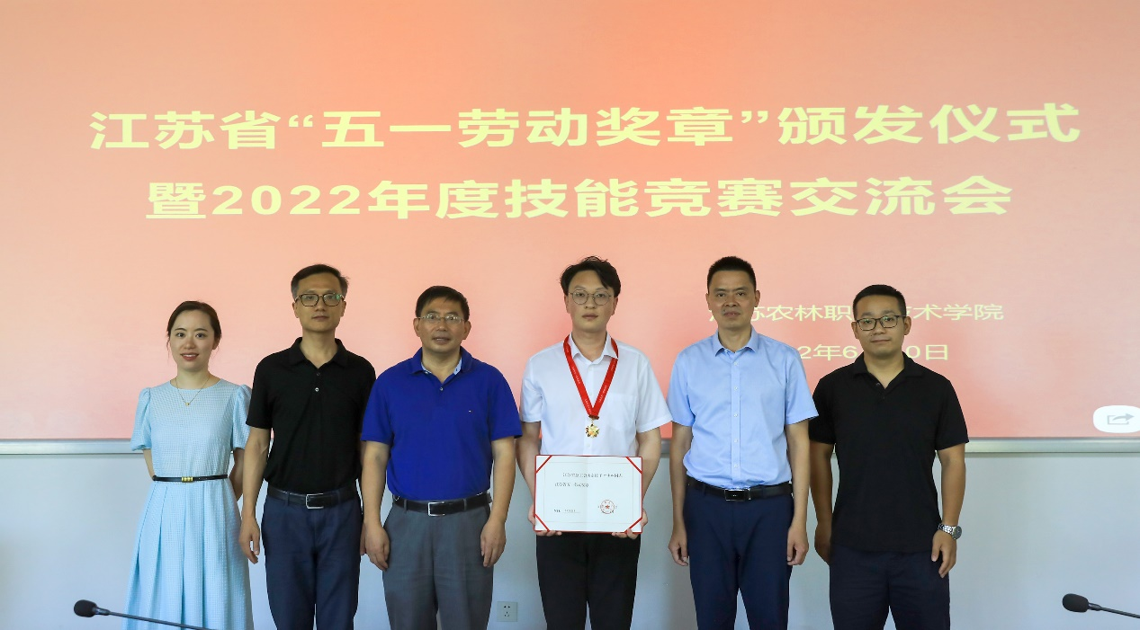 6月10日,江苏省总工会财贸轻纺工会副主任李晓斌、江苏省轻工业行业协会副会长朱进等来我院为叶希珈老师颁发江苏省“五一劳动奖章”。色花堂